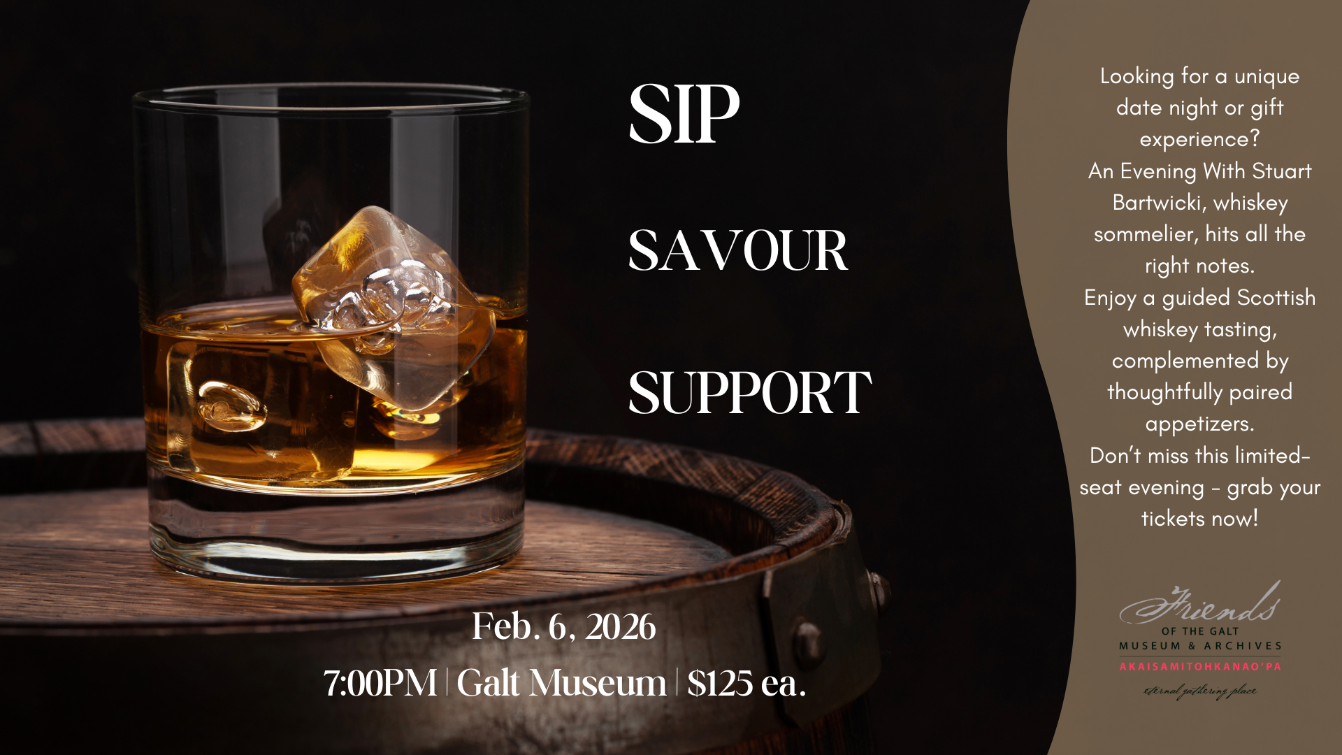 The Friends Society of the Sir Alexander Galt Museum & Archives is a non-profit group that works to promote public appreciation of the Galt Museum & Archives by undertaking fundraising initiatives designed to foster a greater awareness of the Galt and to support the history and culture of our region.